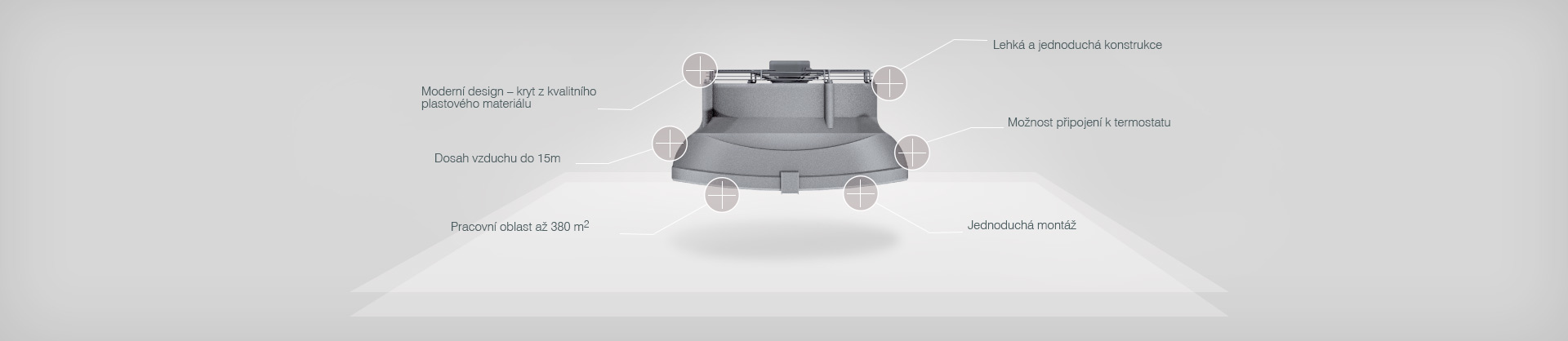 DestratifikátorDestratifikátory HEATER MIX jsou jednoduché a spolehlivé zařízení, které zásadním způsobem zvýší účinnost vytápění objektu. V případě vysokých budov destratifikátor umožňuje díky promíchání vzduchu lepší distribuci tepla v daném místě při zachování teplého vzduchu v pobytové zóně. Zároveň se snižuje časté zapínání topného systému, což umožňuje další úsporu. |
